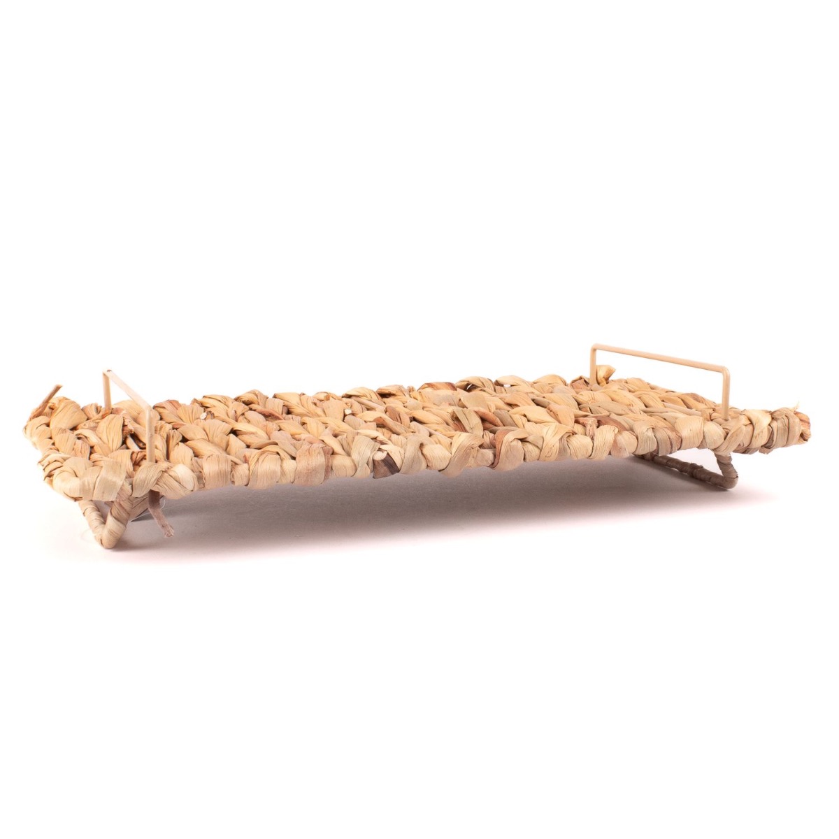 Plateau rectangulaire REHEMA en pandanus tressé, poignées, pieds, naturel, 40x20x7cm