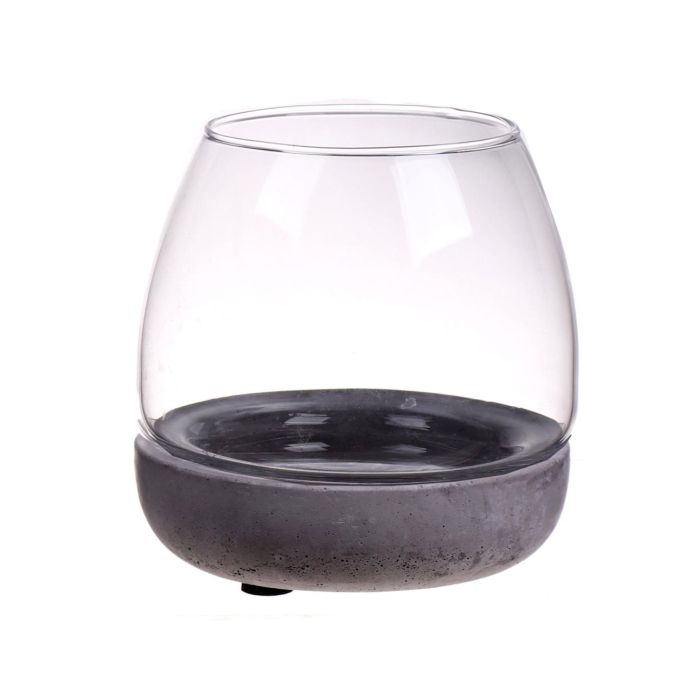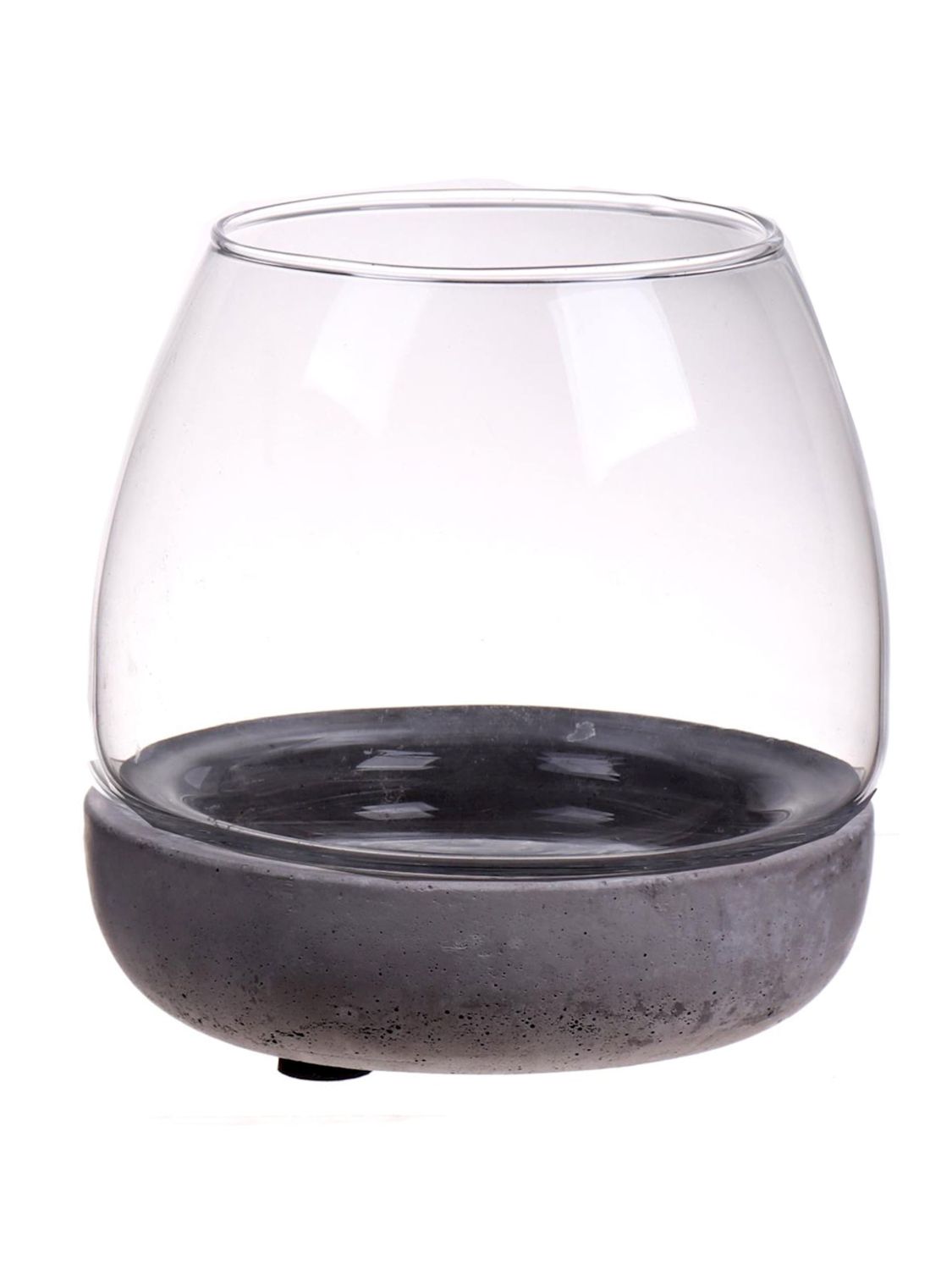 Porte-bougie en verre TONDA, socle en béton, transparent, 10,5cm, Ø10cm