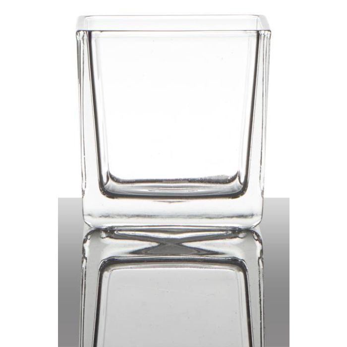 Porte-bougie KIM EARTH, cube/carré, transparent, 8x8x8cm