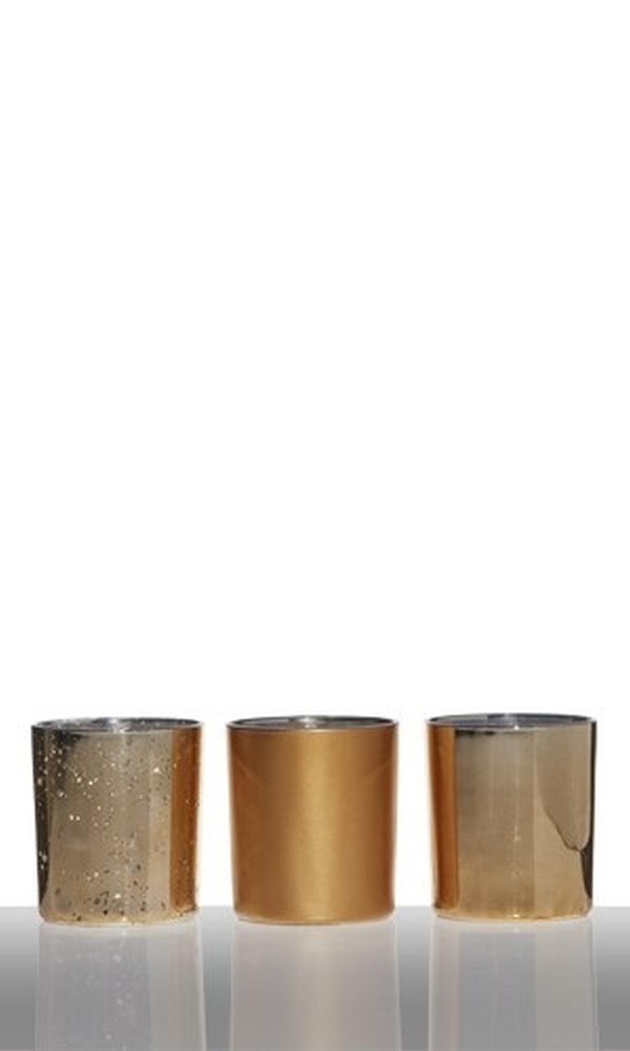 Porte-bougie LYLA en verre, 3 pcs, or, 8cm, Ø7,5cm