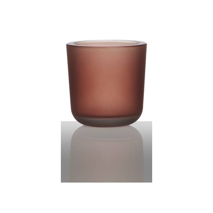 Le verre à bougie / bougeoir NICK de couleur bordeaux mat aux dimensions 7,5 cm ; ø 7,5 cm par INNA Glas offre suffisamment d'espace pour une bougie chauffe-plat et s'adaptera idéalement à votre décoration raffinée.