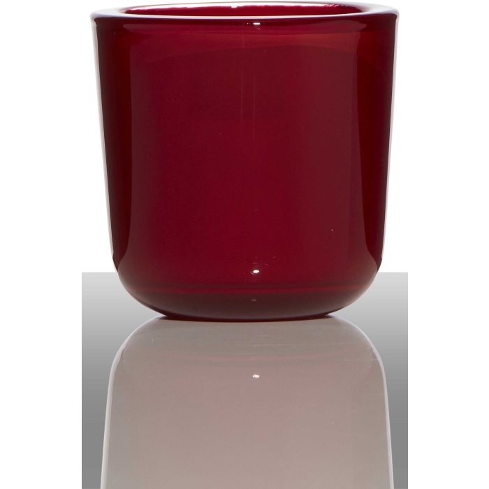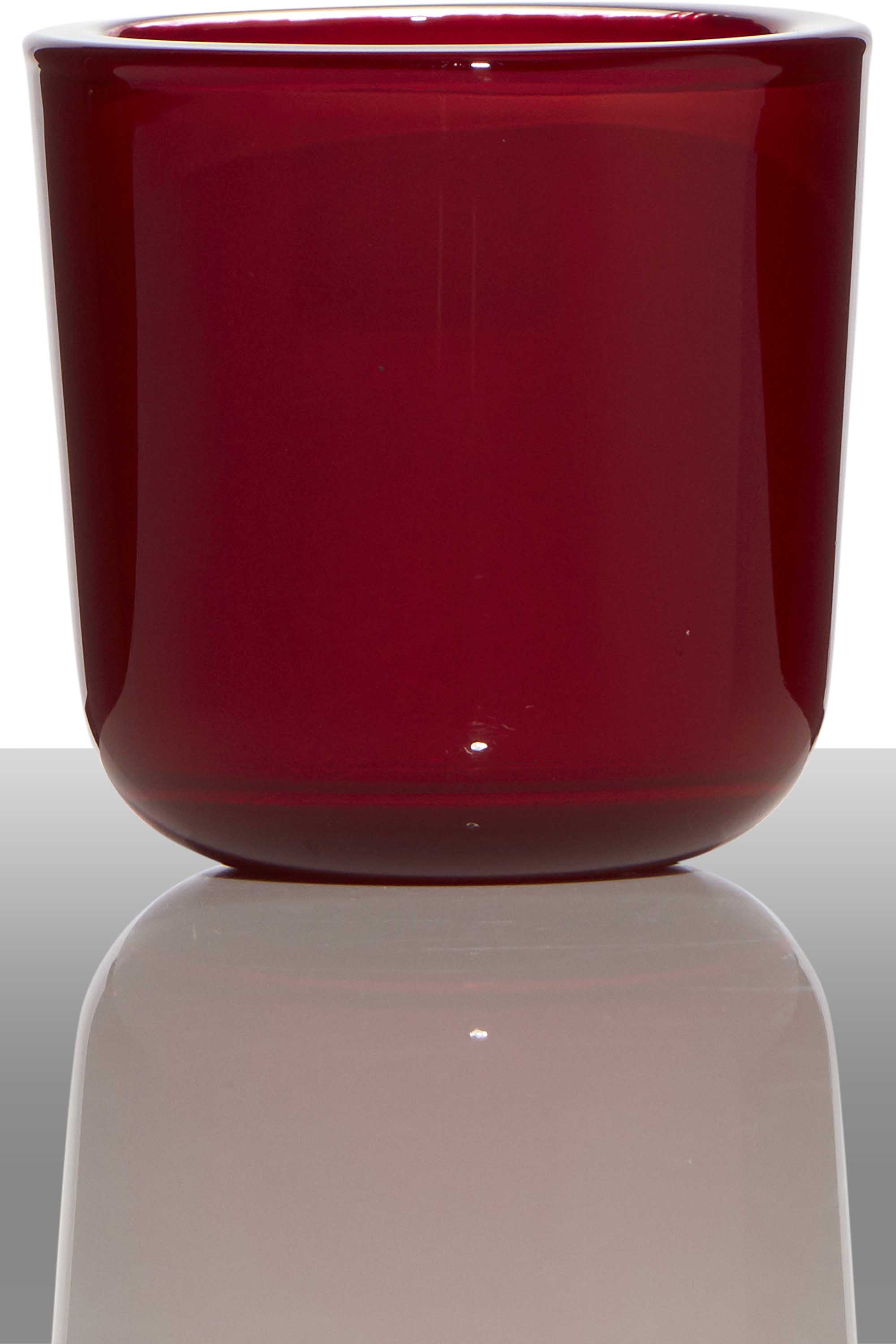 Le verre à bougie / photophore NICK de couleur rouge aux dimensions 7,5 cm ; Ø 7,5 cm par INNA Glas offre suffisamment d'espace pour une bougie chauffe-plat et s'adaptera idéalement à votre décoration raffinée.
