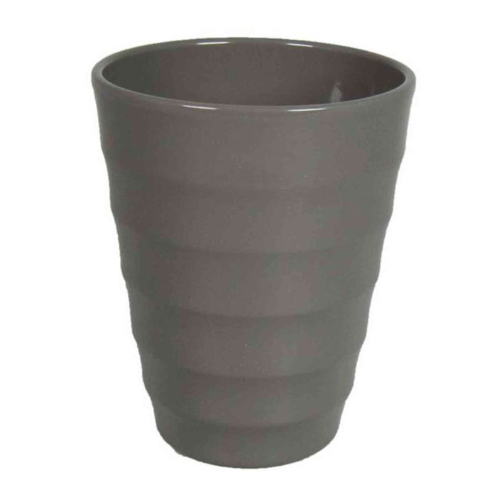 Vase orchidée IZEH en céramique de couleur gris foncé avec un diamètre d'environ 14 cm et une hauteur d'environ 17 cm.