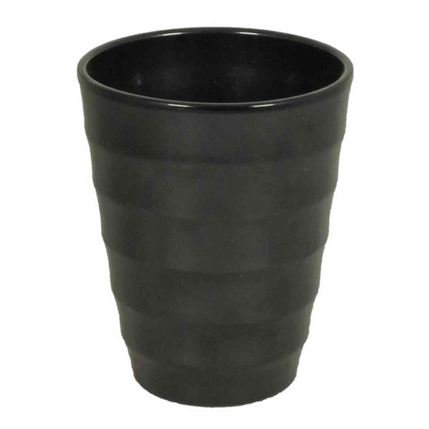 Vase orchidée IZEH en céramique de couleur noire avec un diamètre d'environ 14 cm et une hauteur d'environ 17 cm.