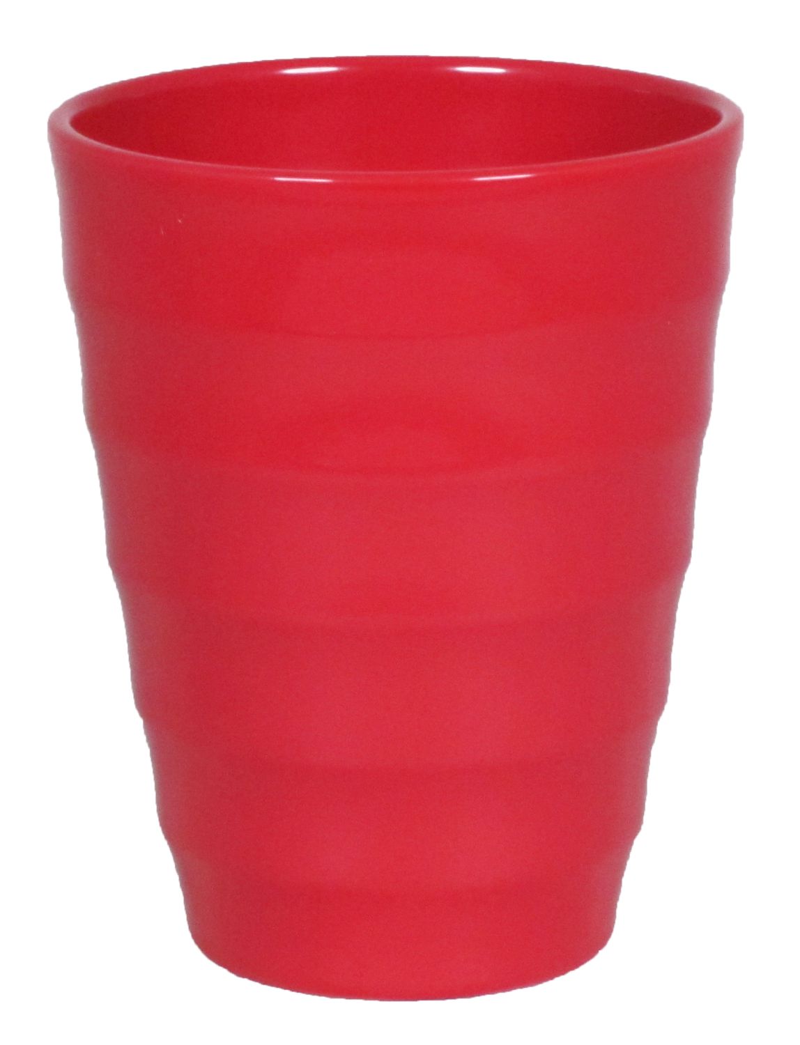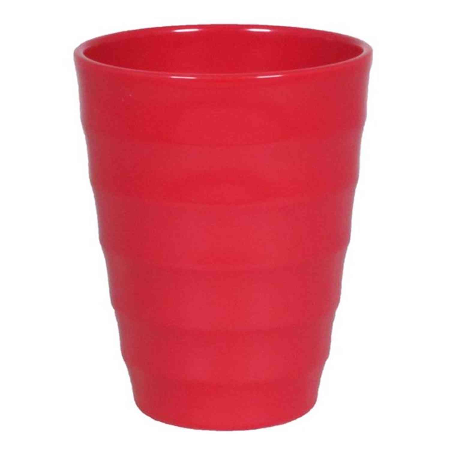 Vase orchidée IZEH en céramique de couleur rouge avec un diamètre d'environ 14 cm et une hauteur d'environ 17 cm.