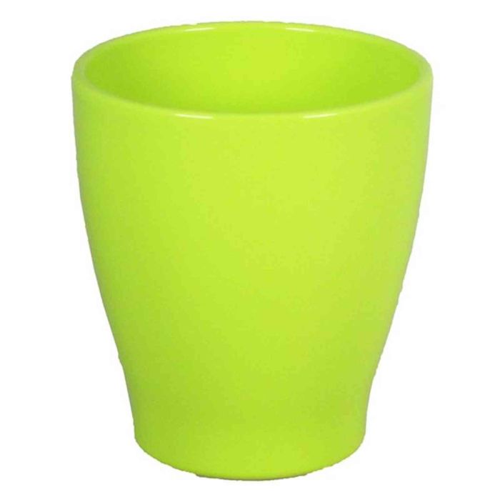 Pot pour orchidée MALAYER en céramique de couleur vert pomme avec un diamètre d'environ 13,2 cm et une hauteur d'environ 15 cm.