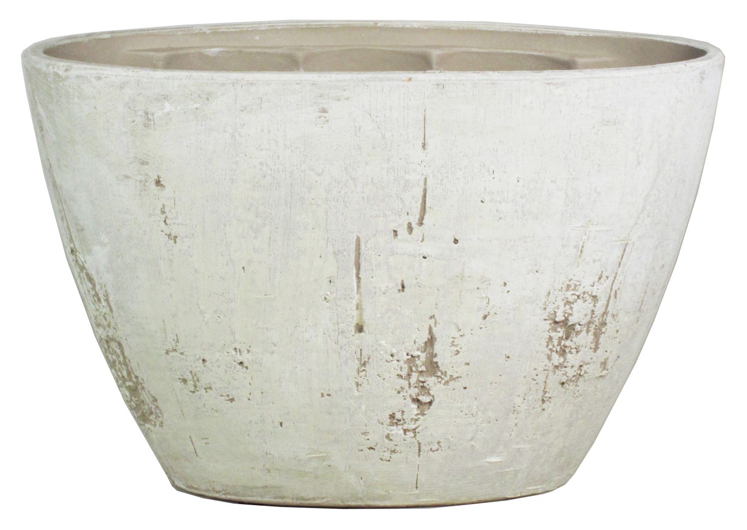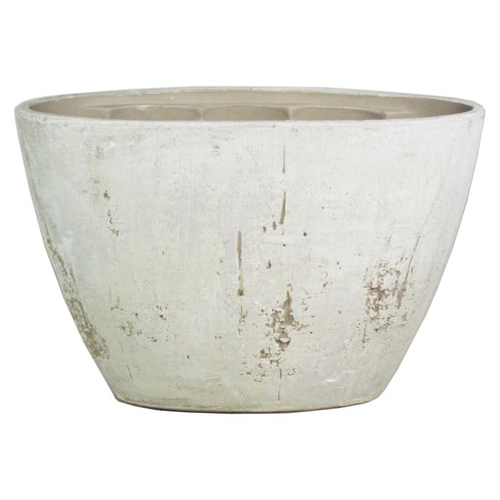 Pot à plantes ADELPHOS en céramique de couleur gris clair-blanc d'une longueur d'environ 32 cm et d'une hauteur d'environ 22,5 cm.