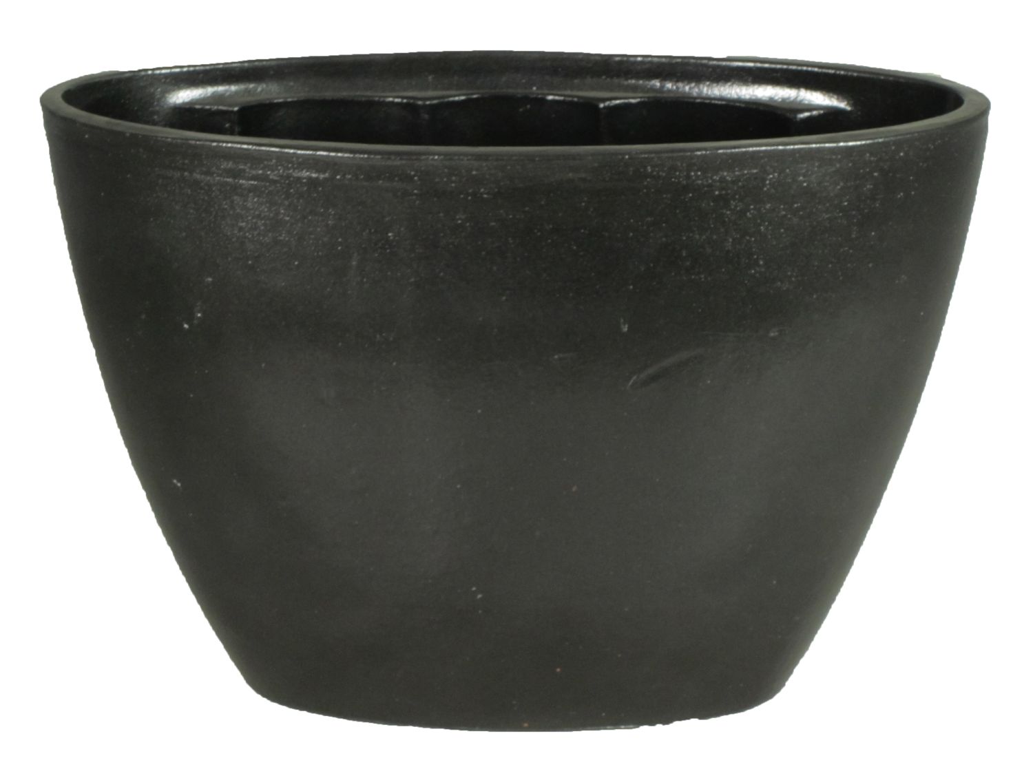 Pot à plantes RODISA en céramique de couleur noire d'une longueur d'environ 32 cm et d'une hauteur d'environ 22,5 cm.