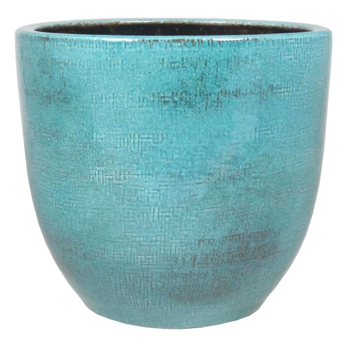 Cache-pot AGLAIA en céramique de couleur bleu océan d'un diamètre d'environ 27 cm et d'une hauteur d'environ 25 cm.