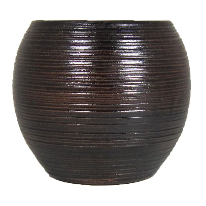 Pot à plantes CATARI en céramique, rainures, brun, 32cm, Ø35cm