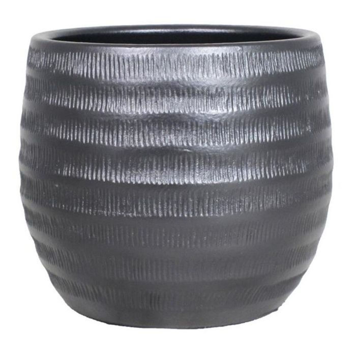 Pot à plantes en céramique TIAM avec rainures, noir mat, 31cm, Ø34cm