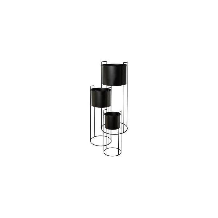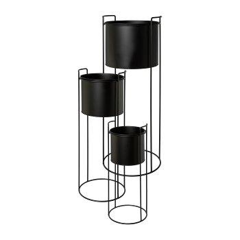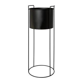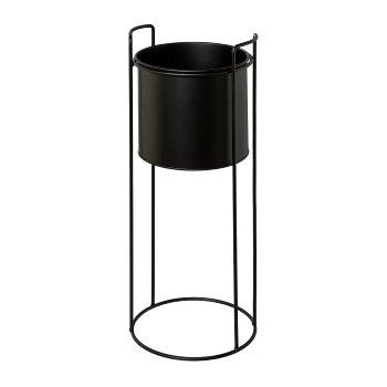 Pot à plantes rond SULOLA avec un support en métal, noir, 19x50cm, 23x65cm, 28x80cm