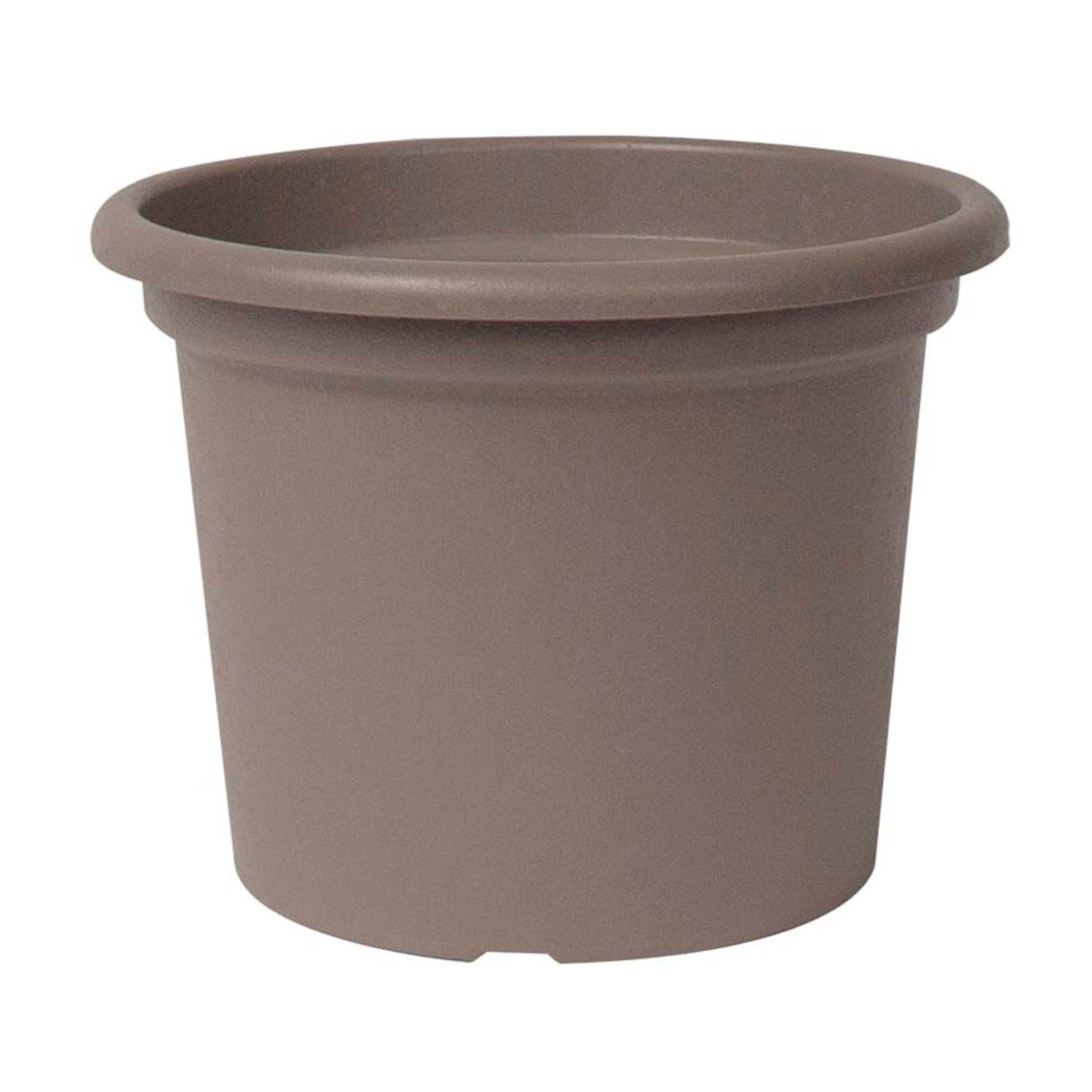 Pot à plantes rond VENERA en plastique recyclé, avec des trous, taupe, 23cm, Ø30cm