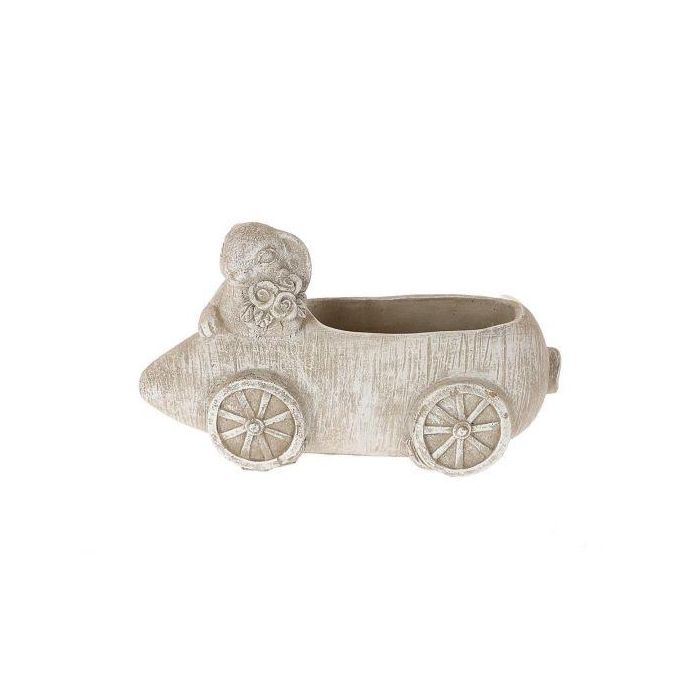 Pot à plantes Voiture RIANAS avec lièvre, ciment, décoration de Pâques, gris-blanc, 18x9x9,5cm