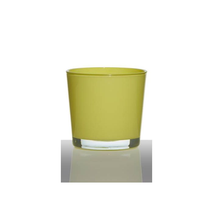 Le bac à fleurs / petit cache-pot ALENA de couleur jaune-vert aux dimensions 11 cm ; Ø 11,5 cm par INNA Glas conviendra parfaitement pour les plantes d'intérieur, les plantes en pot ou les compositions florales.