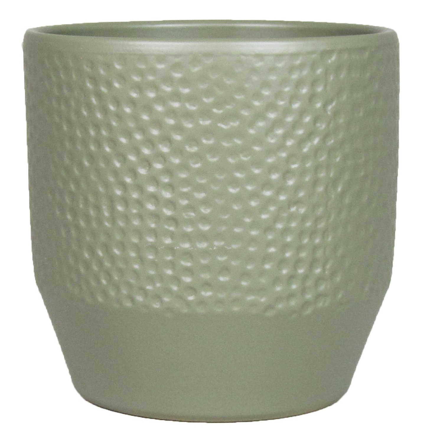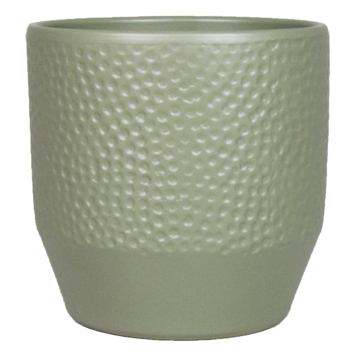 Pot de fleurs BIHAM, céramique, motif martelé, vert olive mat, 13,2cm, Ø13,5cm