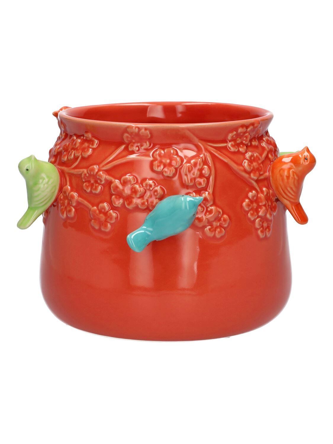 Pot de fleurs BIRDIE en céramique, avec des oiseaux en 3D, rouge-bleu-vert-orange, 11cm, Ø13,5cm