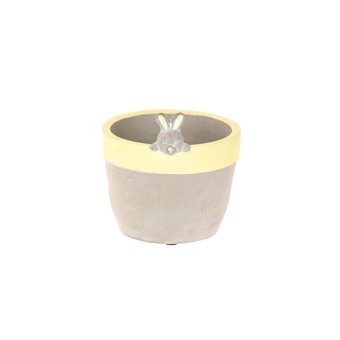 Pot de fleurs BONCHI avec tête de lapin, céramique, décoration de Pâques, gris-jaune, 11,5cm, Ø11cm
