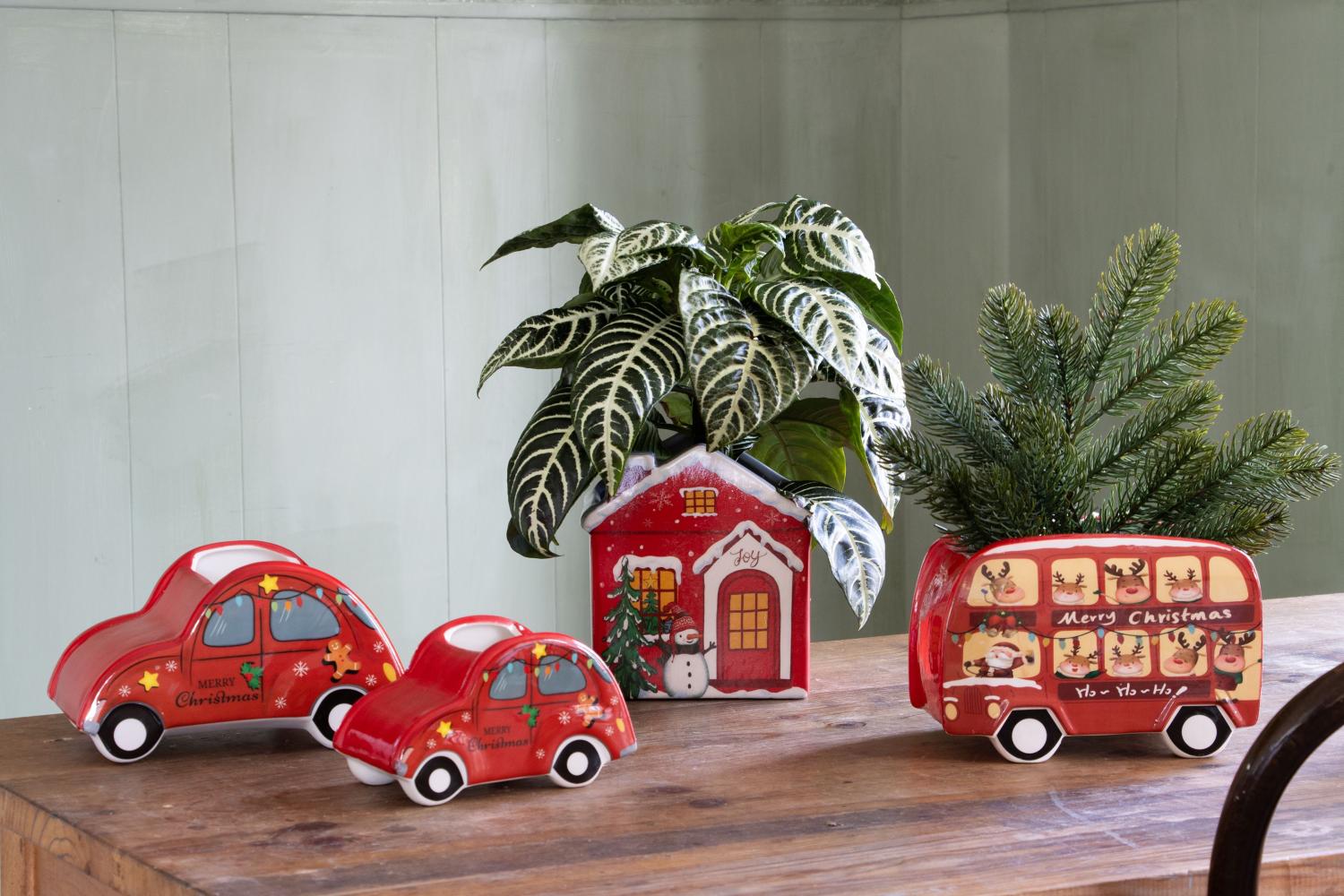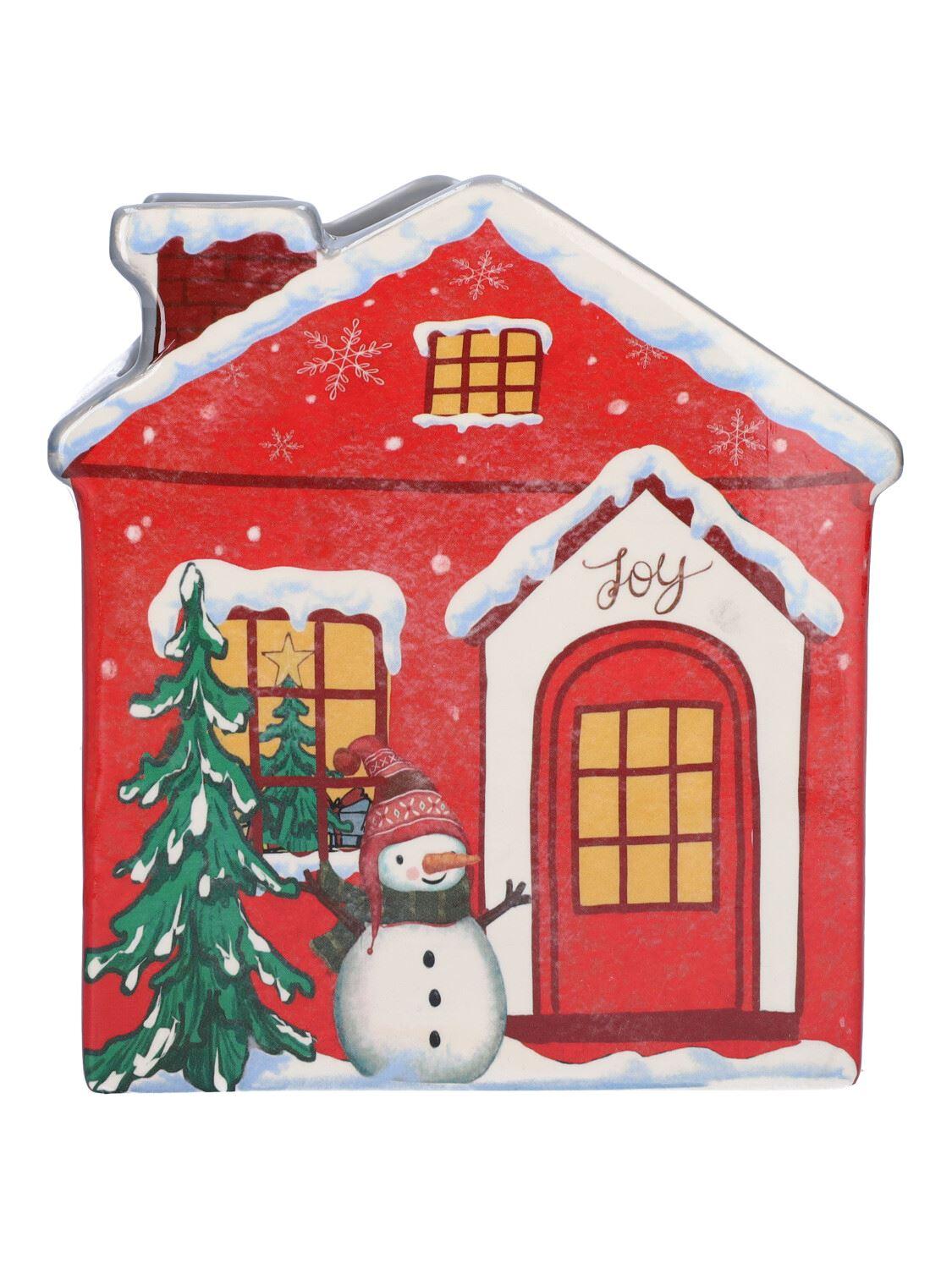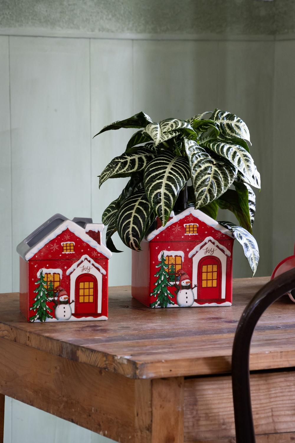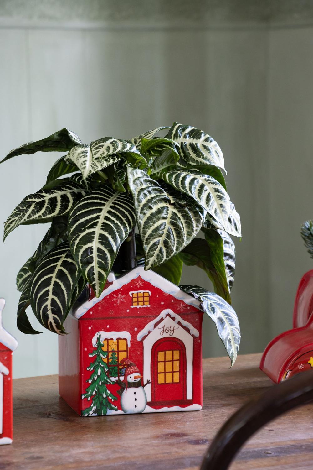 Pot de fleurs en céramique en forme de maison de Noël ARMAS, rouge-blanc, 13x13x15cm