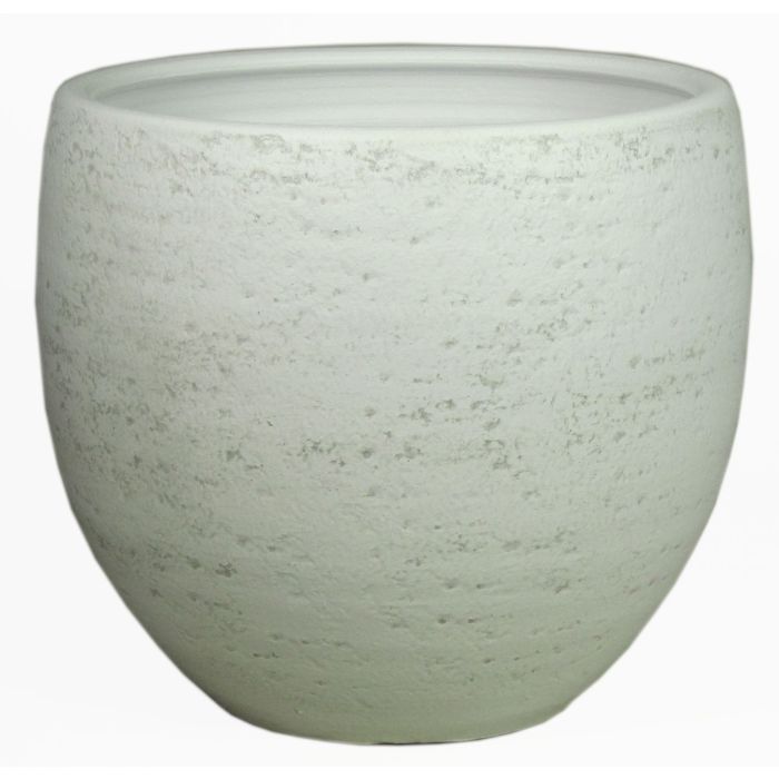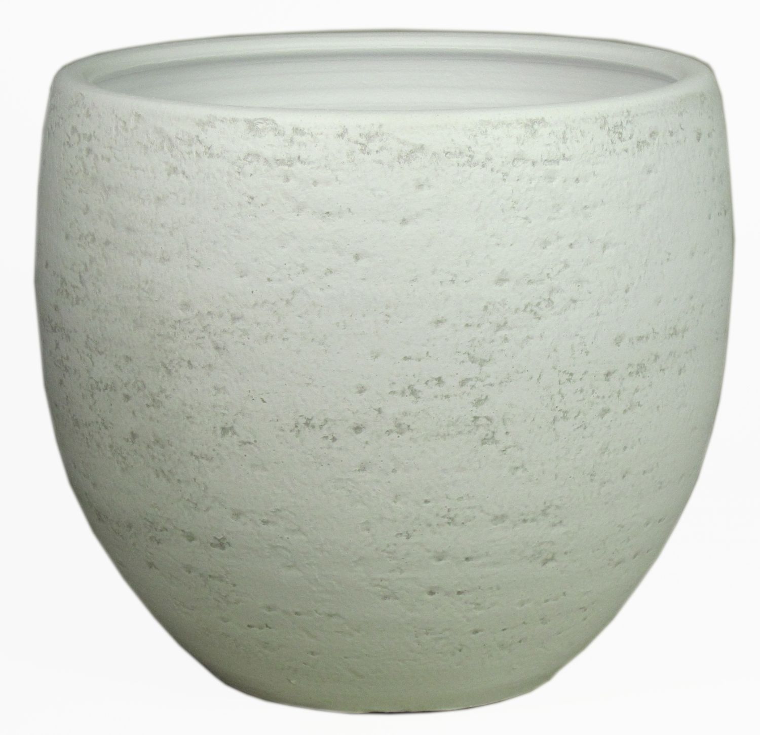 Cache-pot KALEVA en céramique de couleur blanc-gris avec un diamètre d'environ 32 cm et une hauteur d'environ 30 cm.