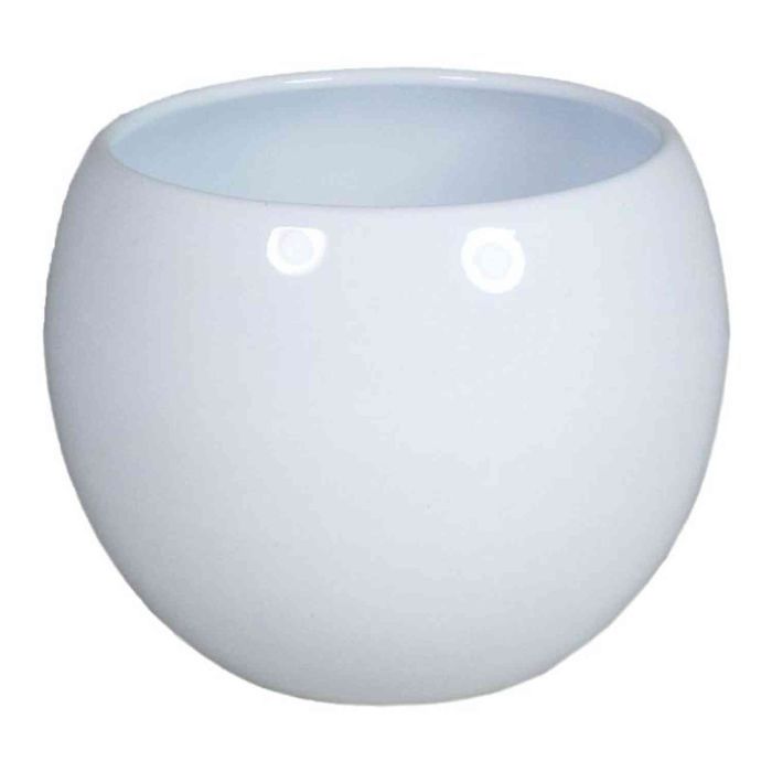 Cache-pot HAMADAN en céramique de couleur blanche avec un diamètre d'environ 14,5 cm et une hauteur d'environ 11 cm.