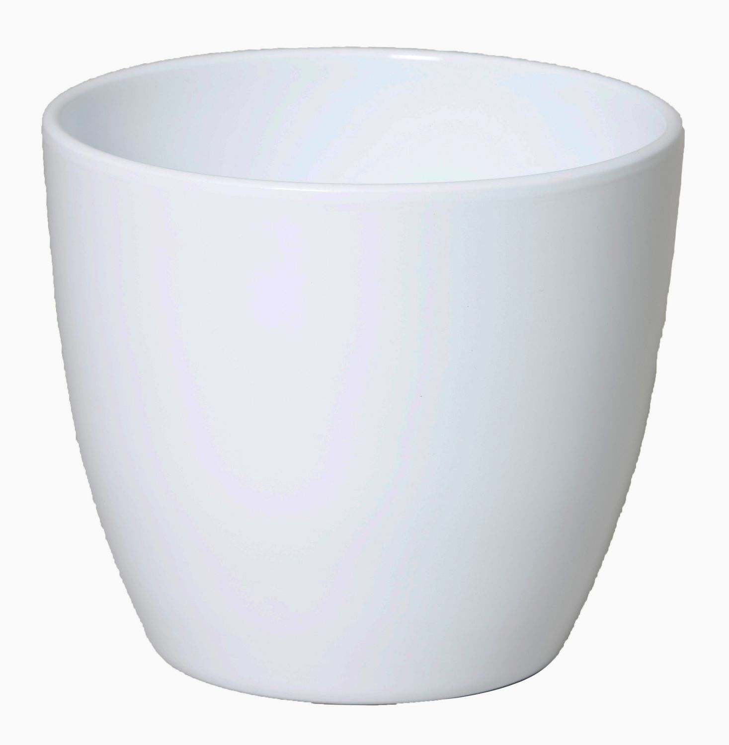 Cache-pot TEHERAN BASAR en céramique de couleur blanche avec un diamètre d'environ 17,5 cm et une hauteur d'environ 15 cm.