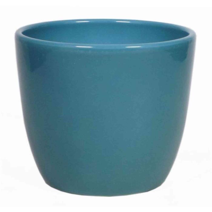 Cache-pot TEHERAN BASAR en céramique de couleur bleu océan avec un diamètre d'environ 17,5 cm et une hauteur d'environ 15 cm.