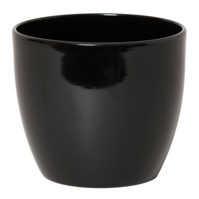 Cache-pot TEHERAN BASAR en céramique de couleur noire avec un diamètre d'environ 15,5 cm et une hauteur d'environ 13,5 cm.