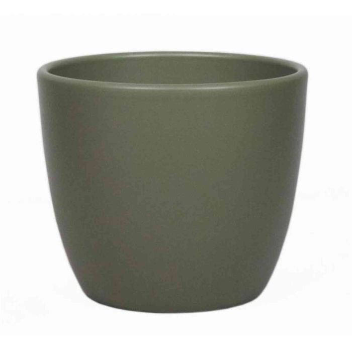Pot de fleurs TEHERAN BASAR, céramique, vert olive mat, 17cm, Ø19,5cm
