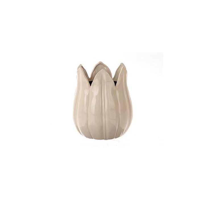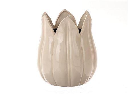 Pot de fleurs TULPA en forme de tête de tulipe, céramique, crème, 23cm, Ø19cm