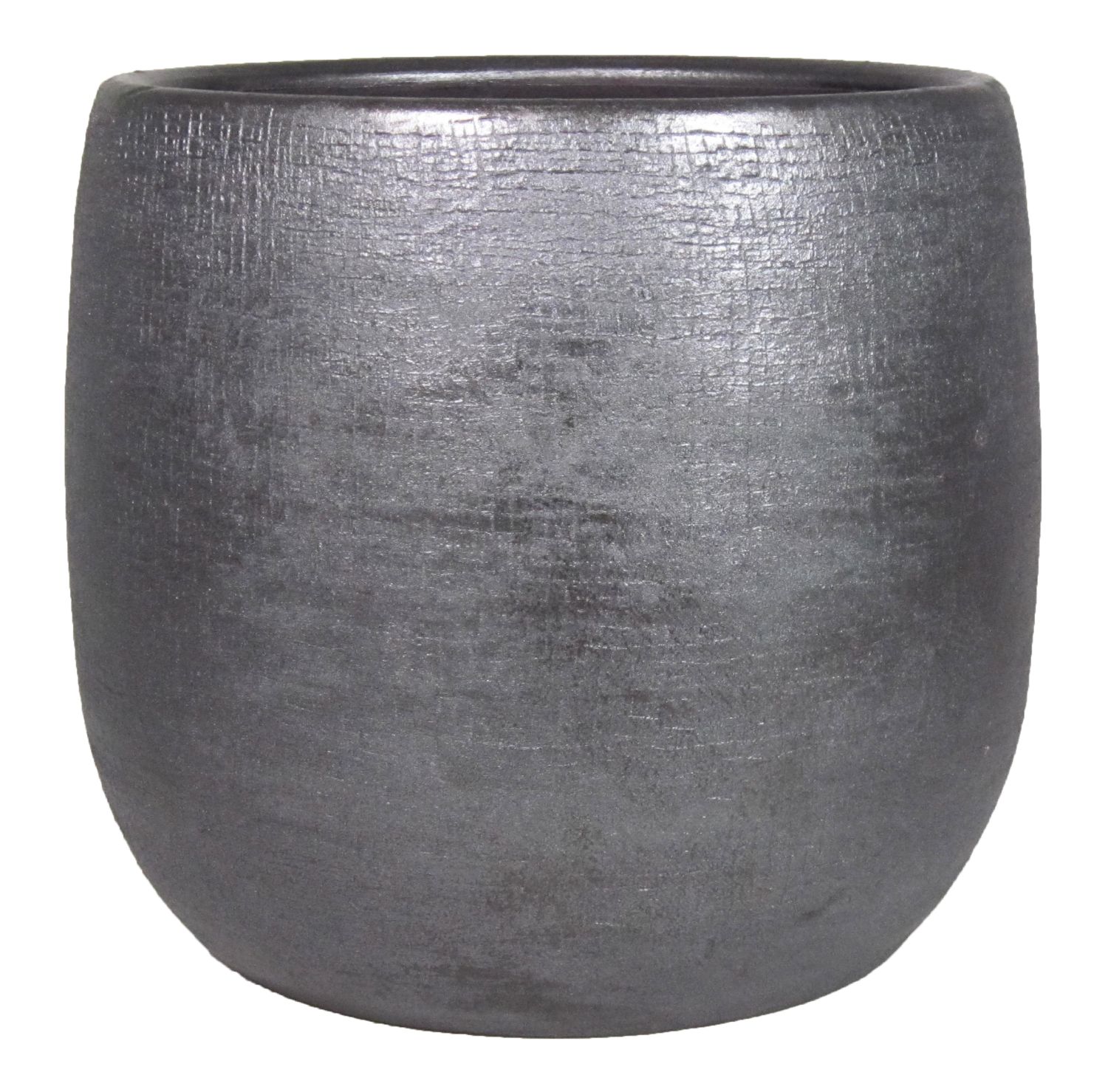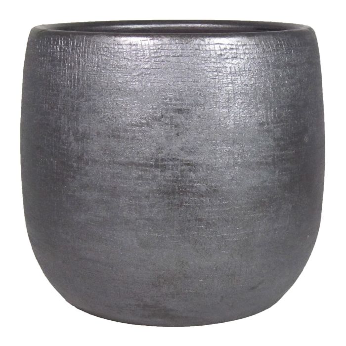 Pot à plantes AGAPE en céramique de couleur noire d'un diamètre d'environ 28 cm et d'une hauteur d'environ 27 cm.