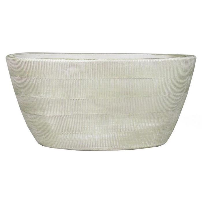Pot en céramique ovale DELTA avec rainures, gris clair-blanc, 30x15x14cm