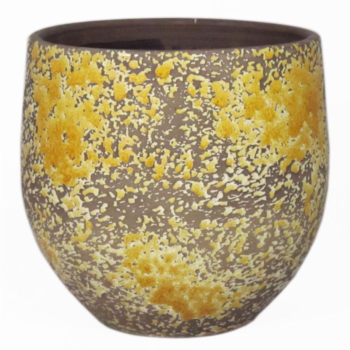 Pot en céramique rustique TSCHIL, dégradé, jaune ocre-brun, 13cm, Ø14cm