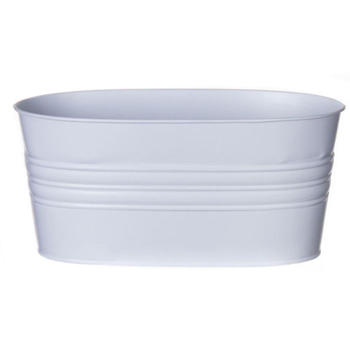 Pot en zinc ovale MICOLATO avec rainures, blanc, 25x13x11,5cm