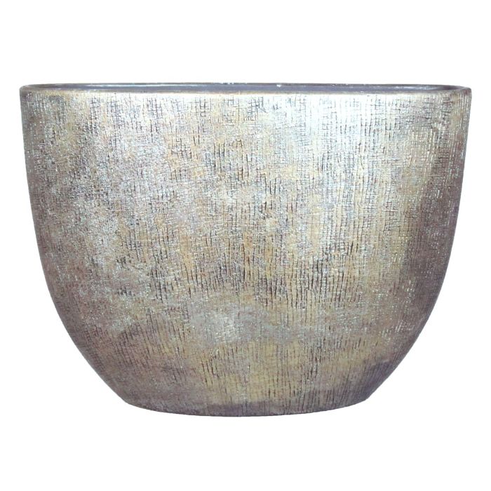 Pot à plantes AGAPE en céramique de couleur or d'une longueur d'environ 50 cm et d'une hauteur d'environ 36 cm.