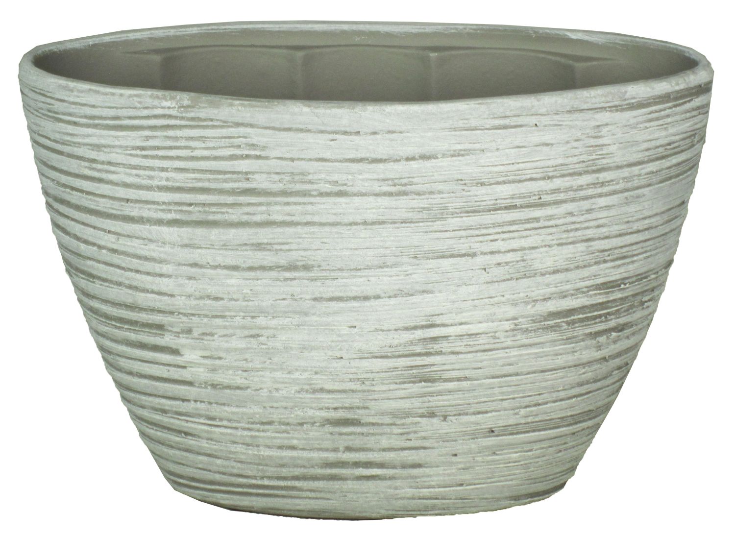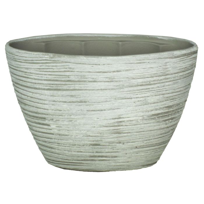 Pot à plantes ADELPHOS en céramique de couleur blanc-gris clair d'une longueur d'environ 32 cm et d'une hauteur d'environ 22,5 cm.
