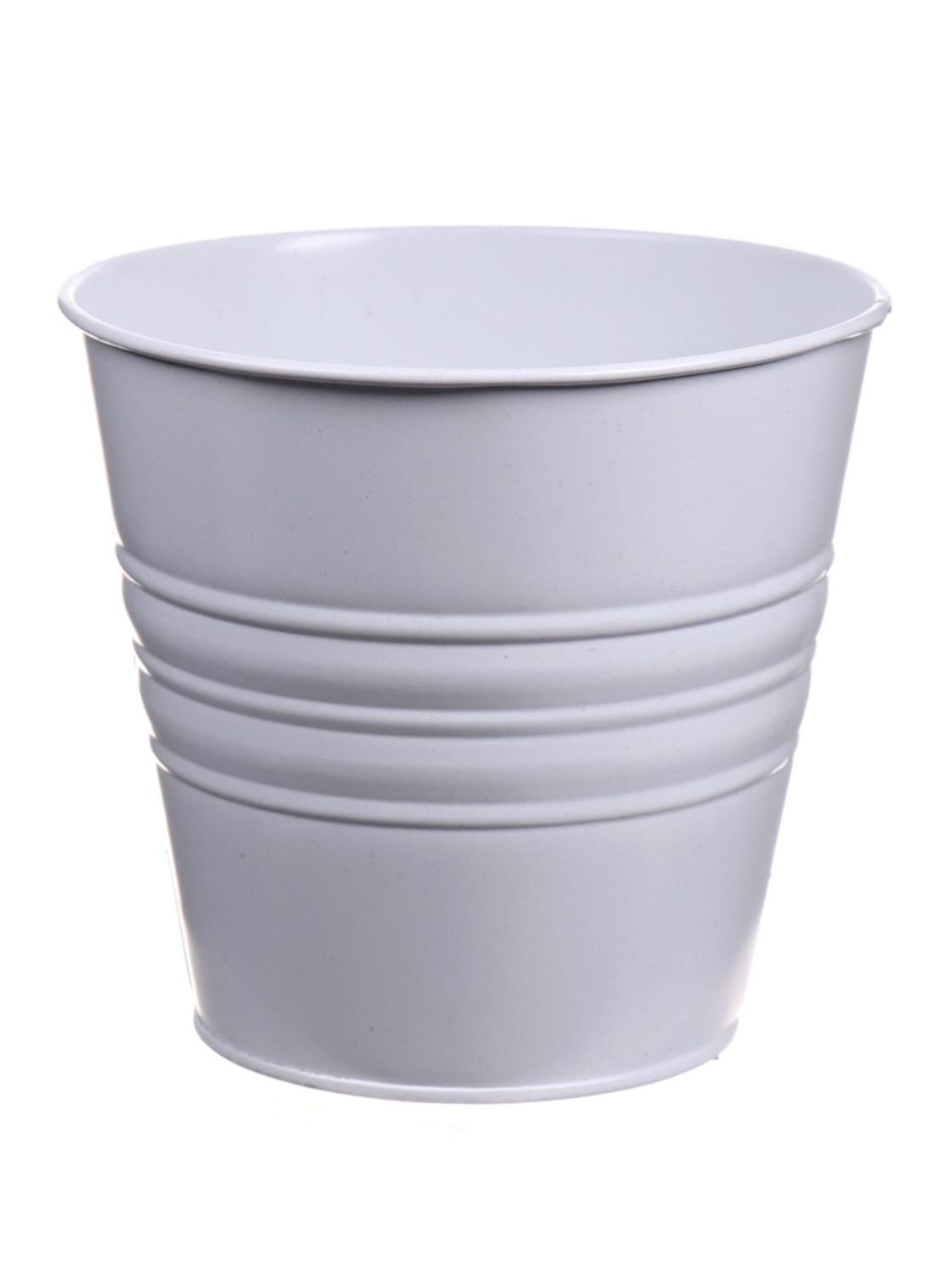 Pot rond en zinc MICOLATO avec rainures, blanc, 13cm, Ø15,5cm