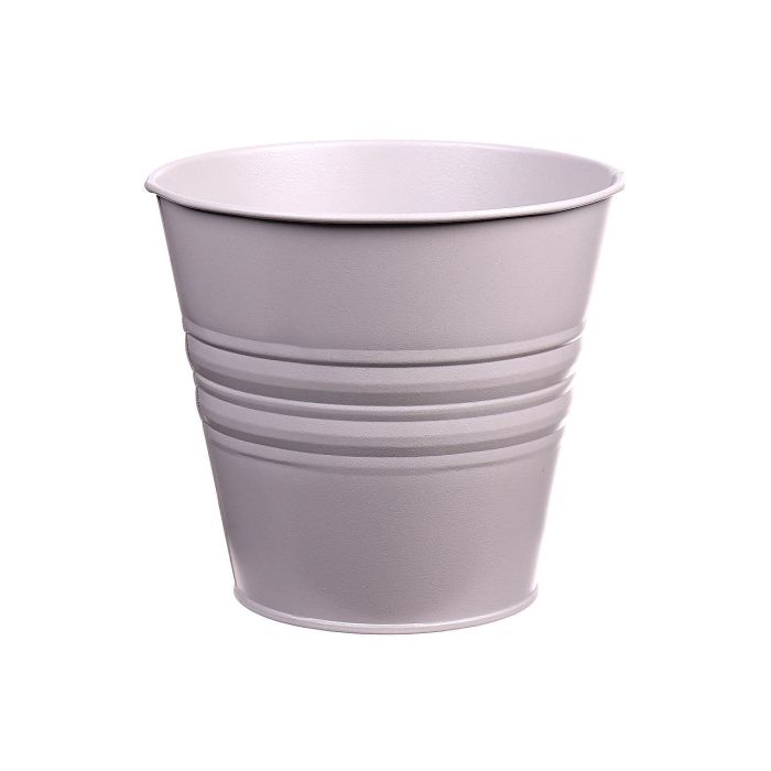 Pot rond en zinc MICOLATO avec rainures, taupe, 16cm, Ø18,5cm
