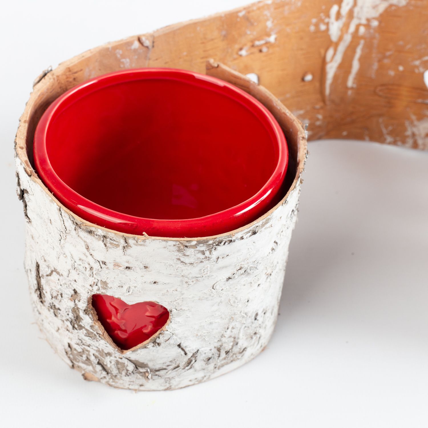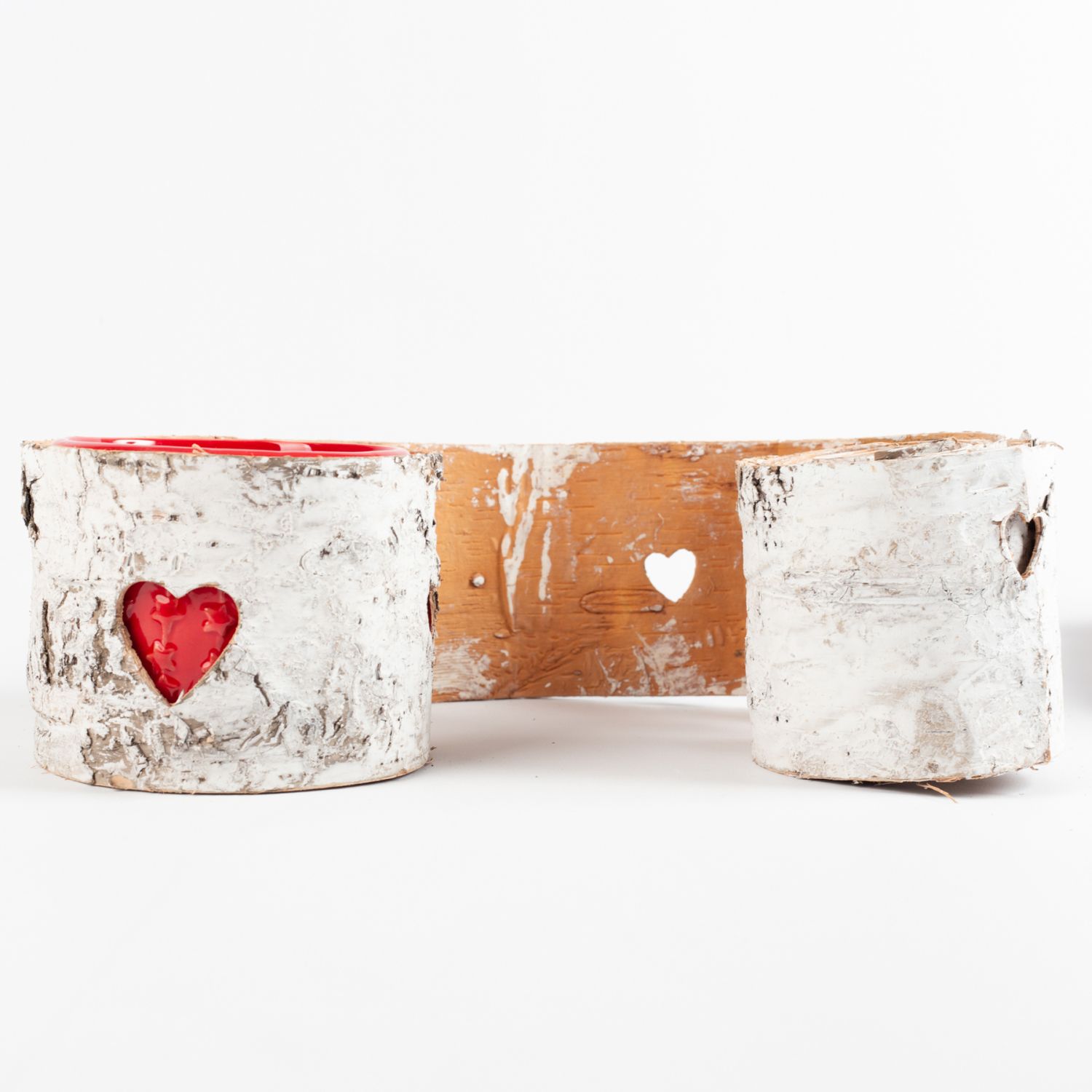 Ruban de bricolage en écorce de bouleau HERZIG avec motif de cœur perforé, blanchi à la chaux, 10x250cm