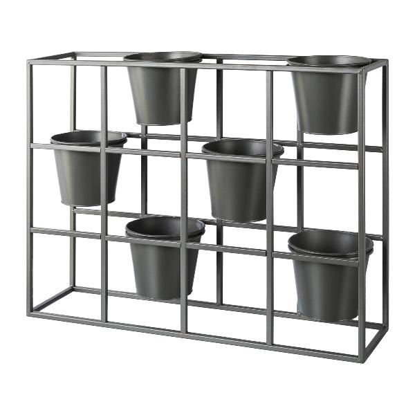 Séparateur d'espace pour des plantes en métal UTOPIA avec 6 pots à plantes, gris, 65x17x52cm