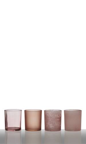 Set de 4 bougeoirs LYLA, cylindre/rond, rose, 28,5x7x8cm