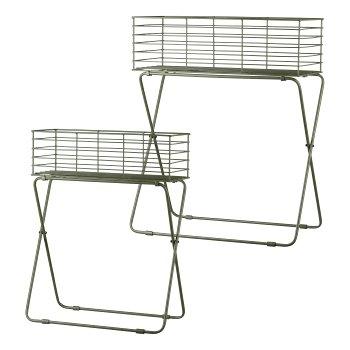 Support pour des plantes en métal Corbeille grillagée TOMOKO, 2 pièces, vert mousse, 50x24x64cm, 60x30x72cm