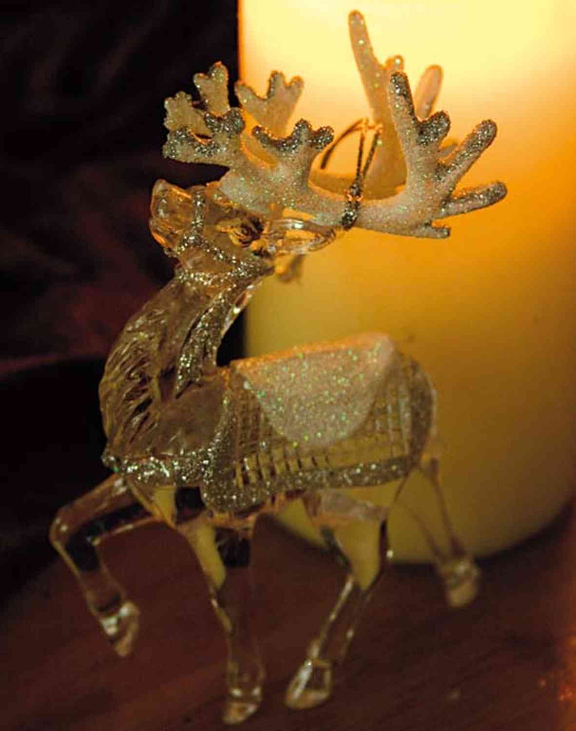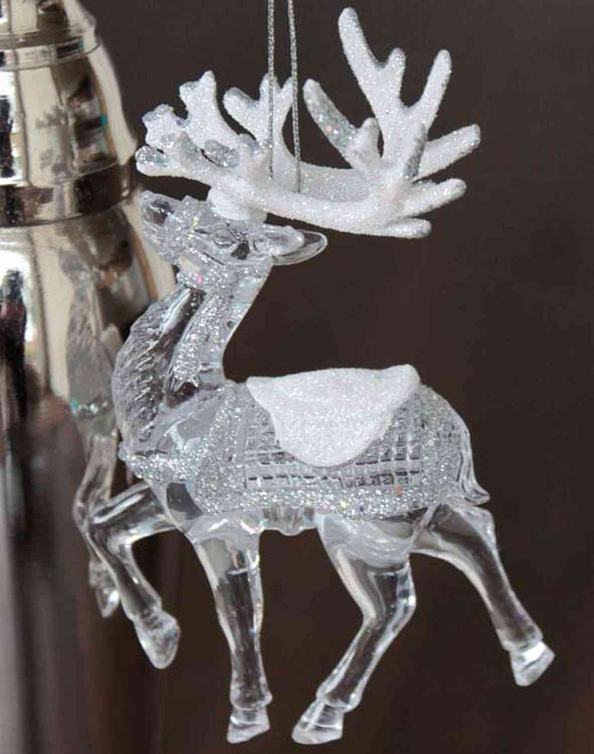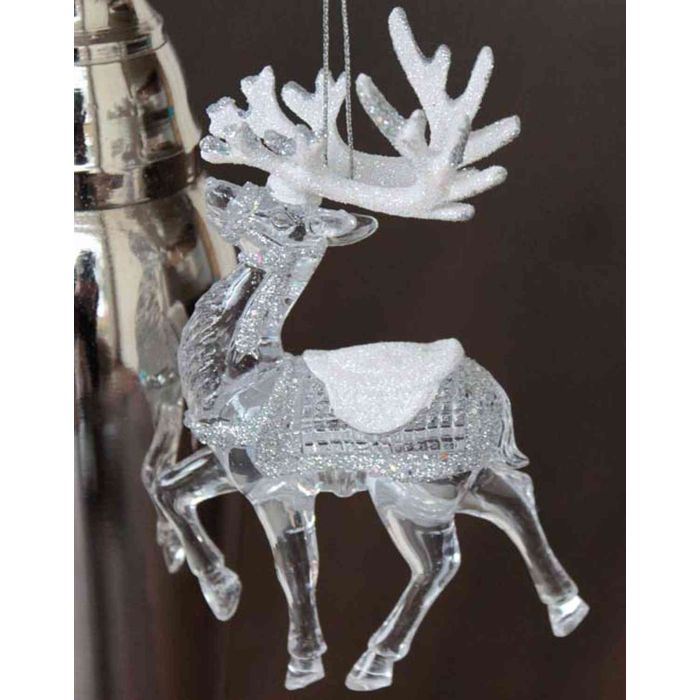 Suspension acrylique Cerf MATTHIS, paillettes, transparent-argent-blanc, 9x2x12cm