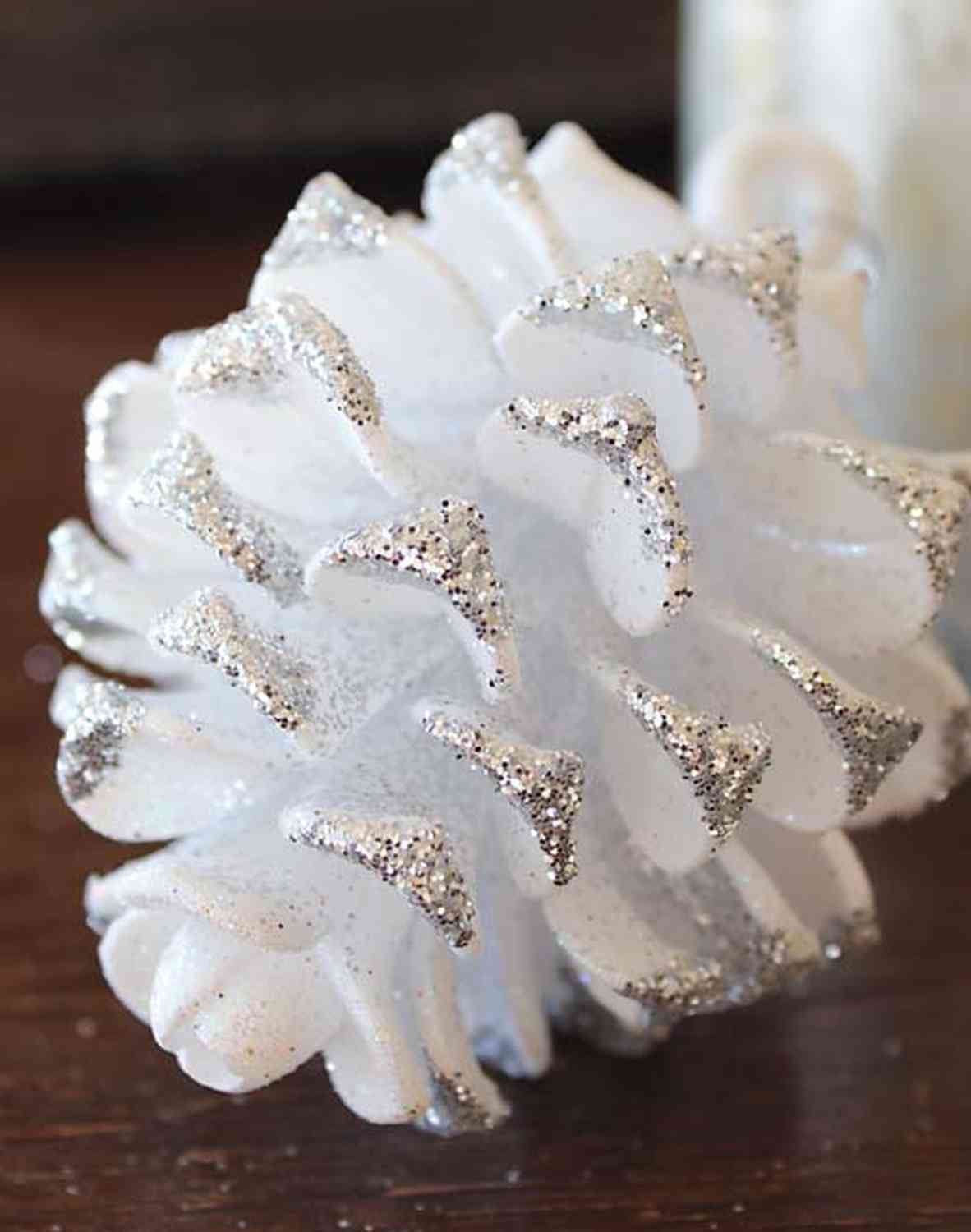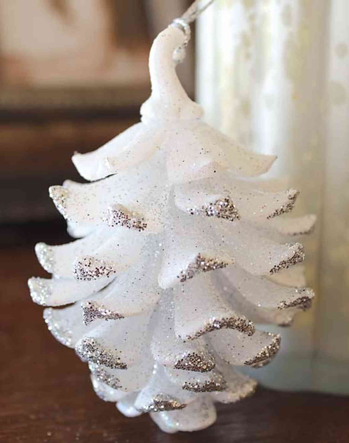 Suspension acrylique pomme de pin CATHARINA, paillettes, blanc-argent, 9cm, Ø7cm