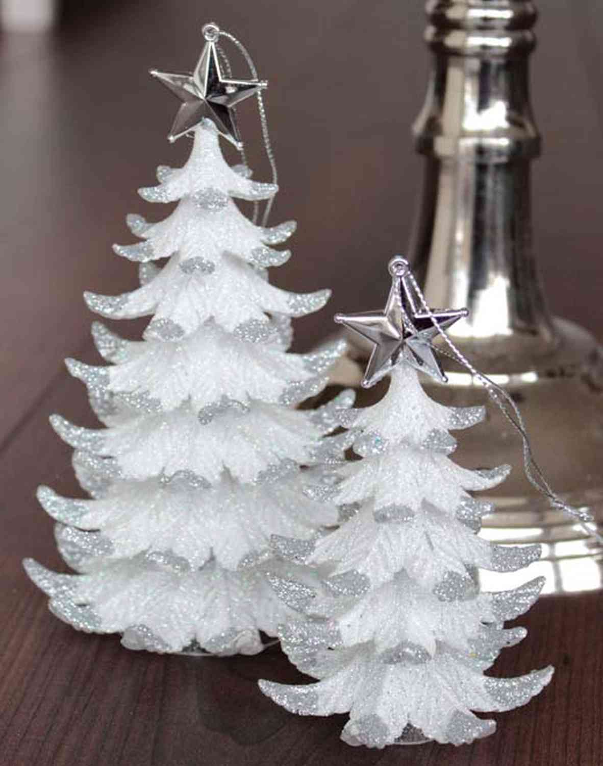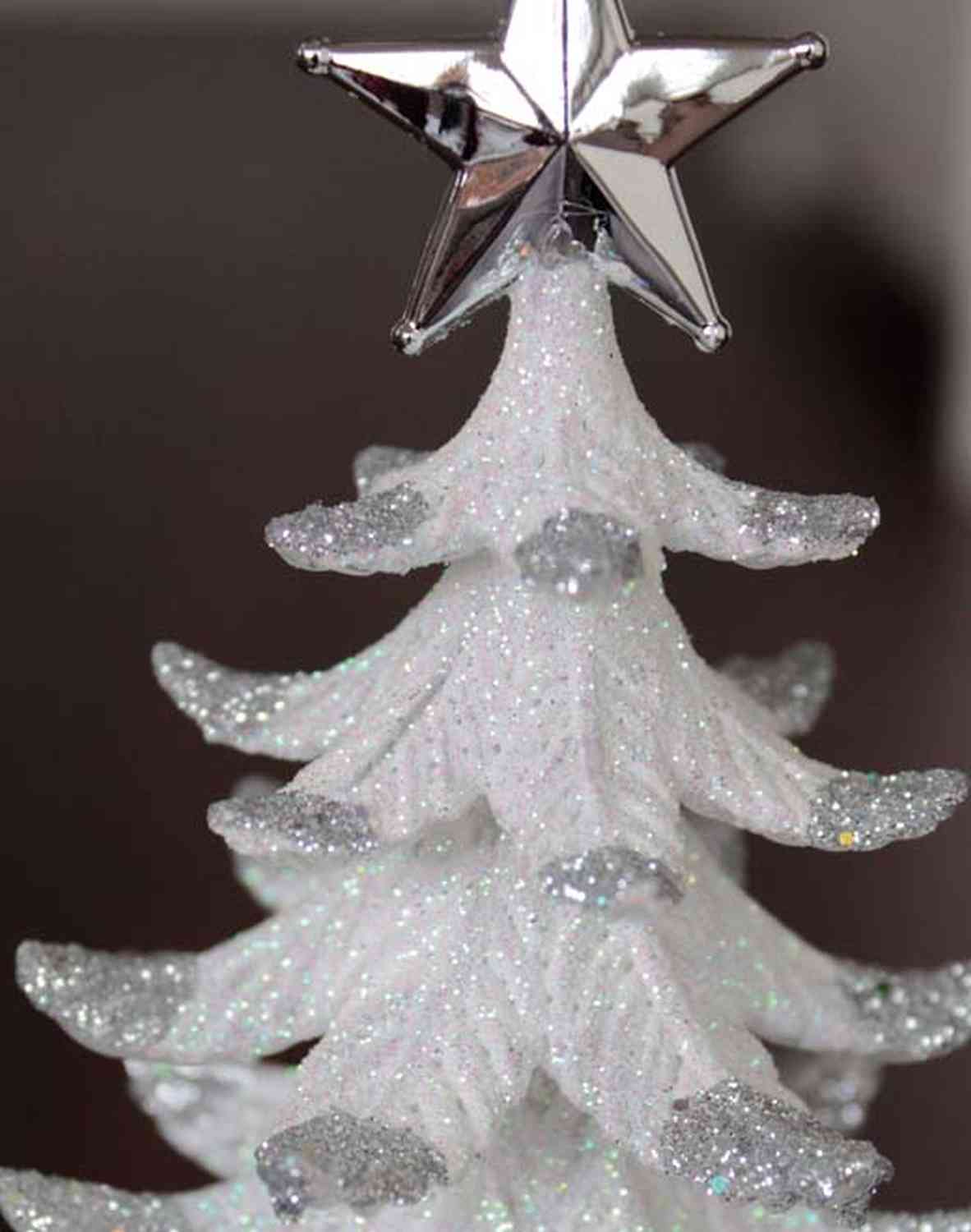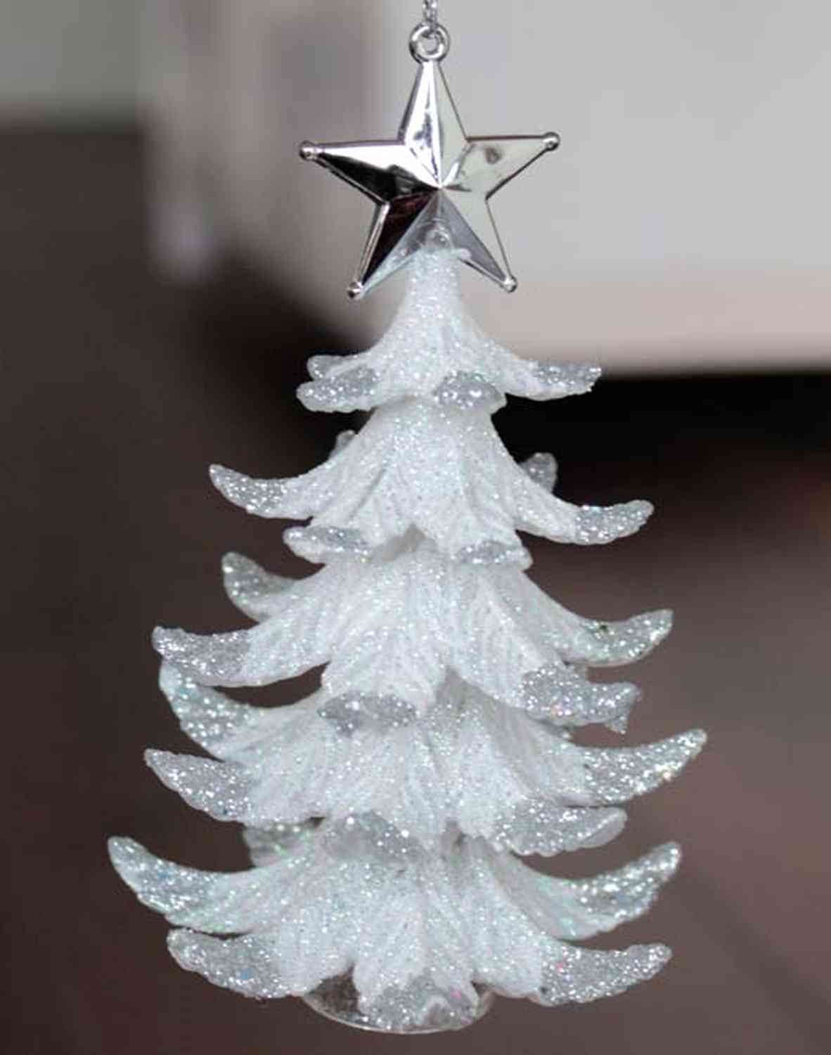 Suspension acrylique Sapin RION avec étoile, paillettes, blanc-argent, 12cm, Ø9cm
