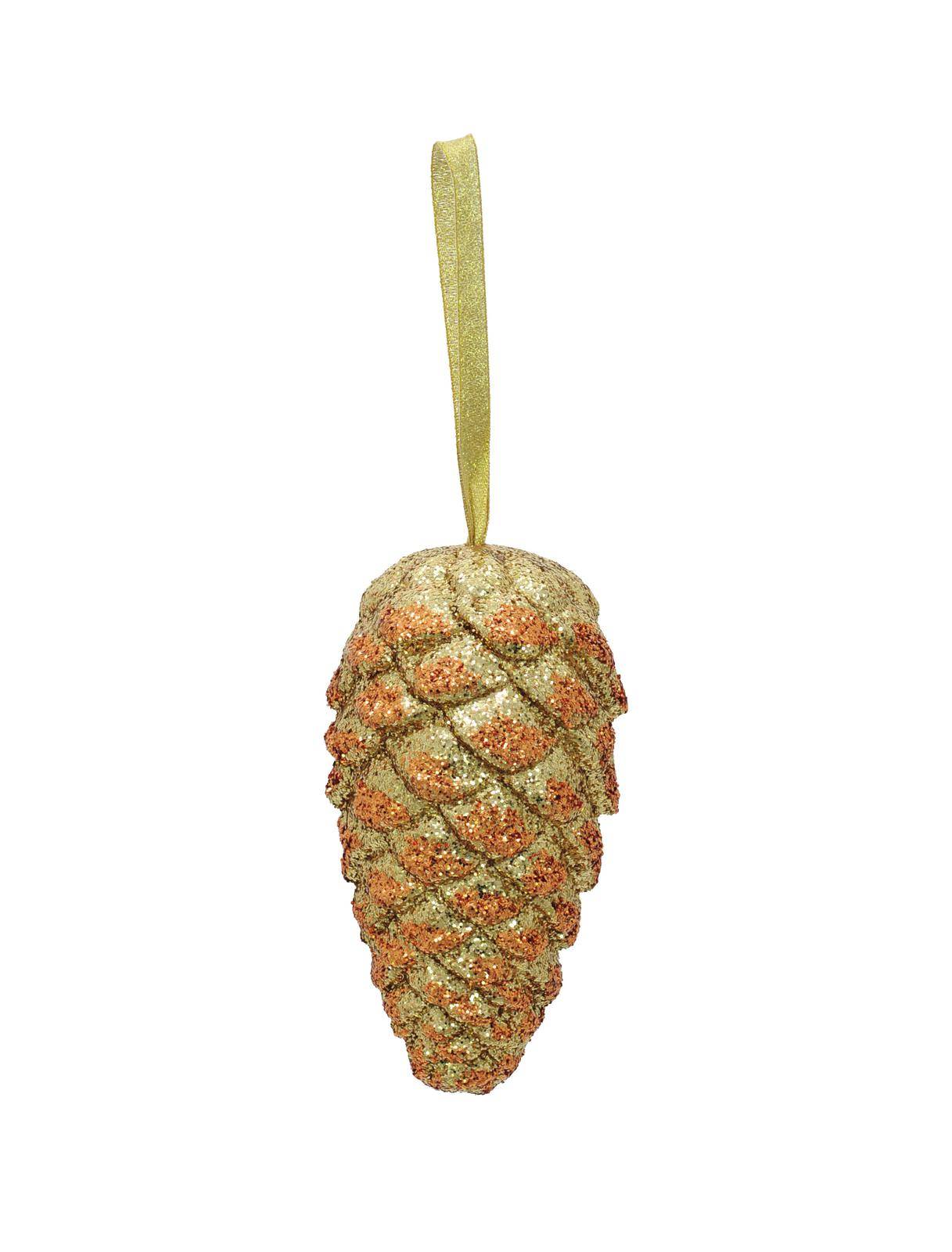 Superbe suspension de pomme de pin scintillante VINCENT de couleur or. La pomme de pin a une longueur d'environ 18 cm.