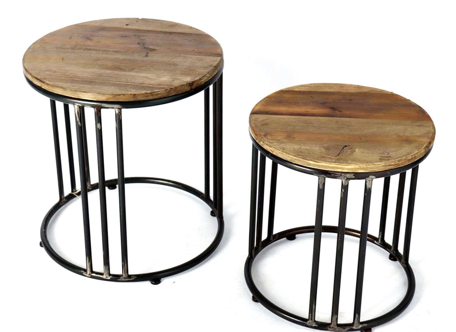 - Dimensions totales des 2 tables env. : hauteur 38,5 cm / Ø 36 cm ; hauteur 44 cm / Ø 41,5 cm