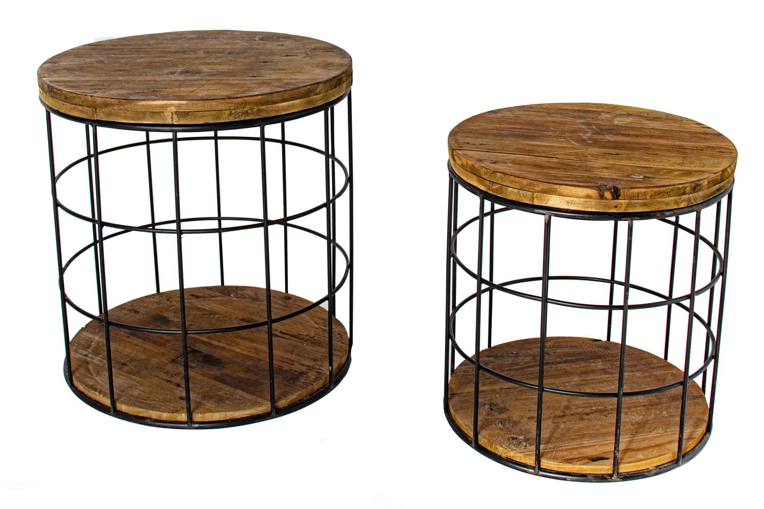 - Dimensions totales des 2 tables env. : hauteur 40,5 cm / Ø 38 cm ; hauteur 46,5 cm / Ø 45 cm