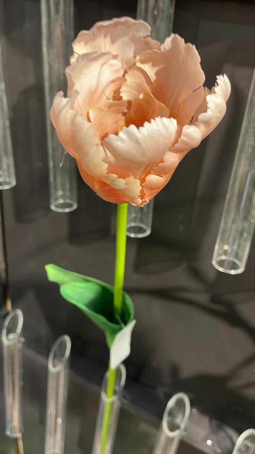 Tulipe perroquet artificielle PETSCHORA, abricot-rose, 65cm