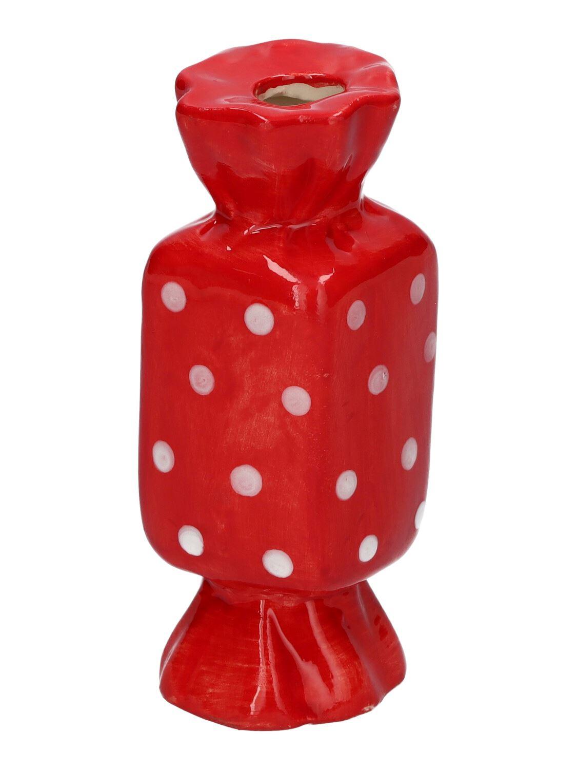 Vase à fleurs carré en forme de bonbon AMIEL en céramique, à pois, rouge-blanc, 6,5x6,5x15cm